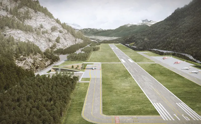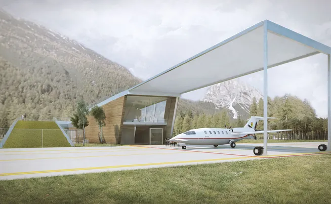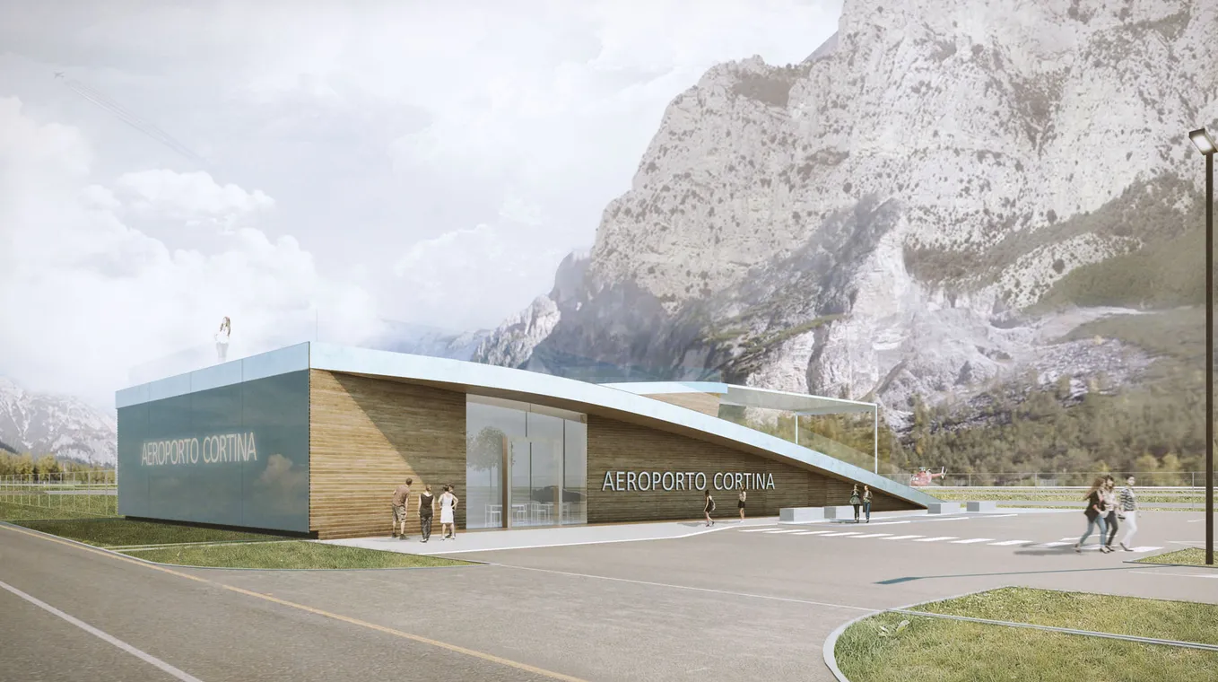 The Cortina Airport project represents the rebirth of a small and exclusive historic airport, destined to become a landmark in the area of interest for the Milan-Cortina 2026 Olympics. The initiative has been developed with a fluid and organic approach: the infrastructure rises from the ground, gradually evolving and transforming into a large eye that welcomes the gaze, culminating along the runway. This vision aims to enhance the memory of the past, reinterpreting it through an innovative and sustainable approach.