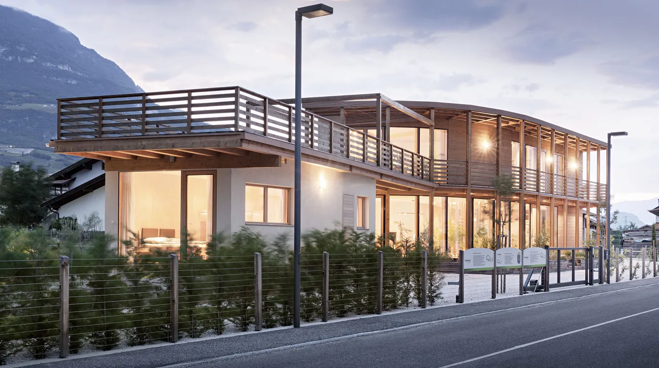 Casa Salute presents itself as a living, pulsating architectural organism, combining aesthetics and sustainability in an innovative project. Built entirely with solid NUR-HOLZ wood, without the use of nails or glues, this building is not only an example of ecological architecture but also a manifesto for a new concept of living, capable of producing more energy than it consumes. With its Casa Clima Gold Nature and Passivhaus standards, Casa Salute represents a model of energy efficiency that breaks away from traditional conventions.
