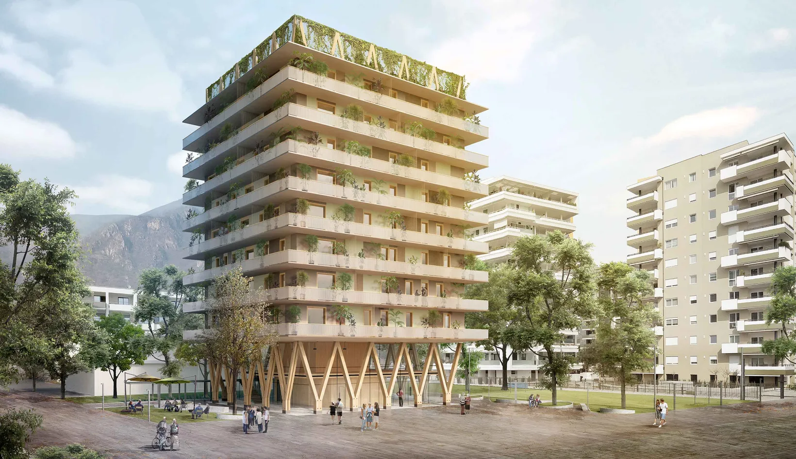 The project for the Prati di Gries neighborhood stands out for its ambition to become a landmark building, not only for its architectural and functional quality, but also for its sustainability and integration into the urban context. Presented in an architectural competition, the building overlooks the Central Square, transforming the area into a landmark for the community. The proposal is based on a new construction, designed to meet IPES housing and maintenance principles, emphasizing social cohesion and livability.